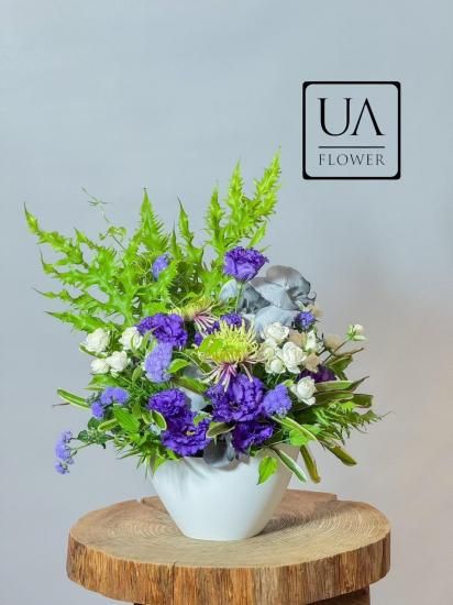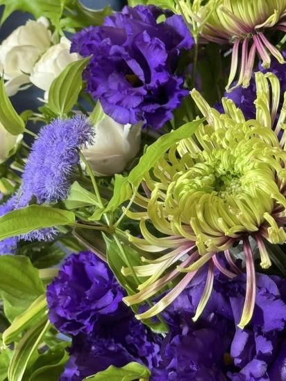 贈り物に選ぶなら、古希のお祝いにぴったりなフラワーアレンジメントをご紹介します。このフラワーアレンジメントは、古希を祝う特別な日に相応しい洗練されたデザインが特徴です。シックな紫色の花々が絶妙に組み合わさり、高級感あふれるオシャレな雰囲気を演出します。福岡の花屋が手がけた、一つ一つ丁寧に選ばれた花々が贈り物の特別さを際立たせます。