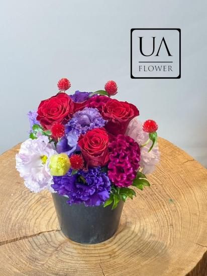 おしゃれでセンスの良いプレゼントをお探しの方におすすめです。福岡の花屋が手がけるお任せフラワーアレンジメントは、花々の美しさと色彩を最大限に引き立てた贈り物です。彩り豊かな花々が魅力的に組み合わさったアレンジメントは、どんな場面にも華を添えてくれること間違いありません。